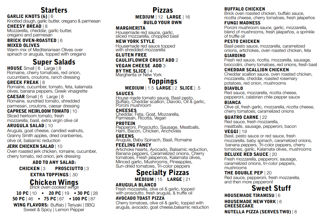 Complement your meal with wraps like the Buffalo Chicken Wrap or the refreshing Vegan Wrap. Don't overlook the starters either; garlic knots and mixed olives set a perfect tone for your feast.